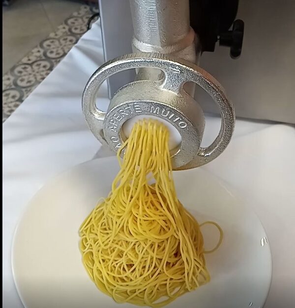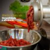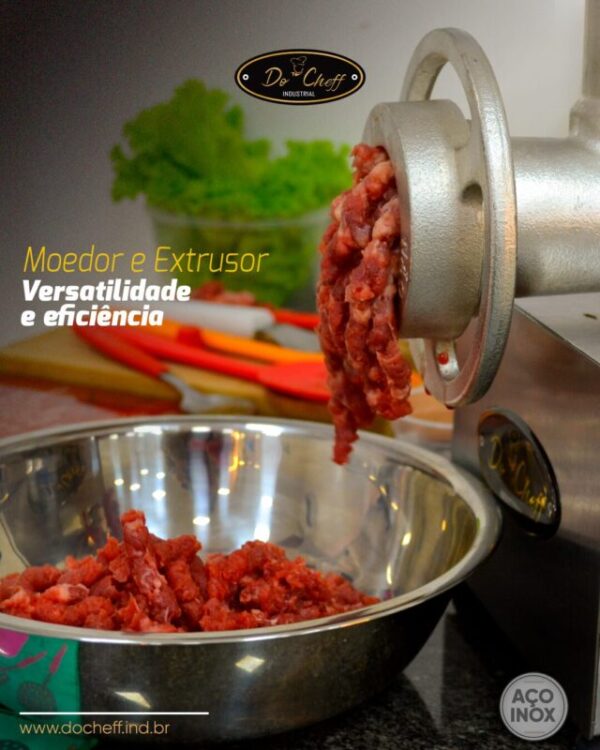 Serra fita para carnes com mesa móvel e lâmina de 1,87 m, com extrusor e moedor B 08. Mesa:50 x 62cm Bivolt: 127/220 v Produção massa: B 08 para  12Kg/h Produção carne: B 08  para 75Kg/h Tamanho:(L X C X A) 73 X 59 X 94cm Peso:39kg